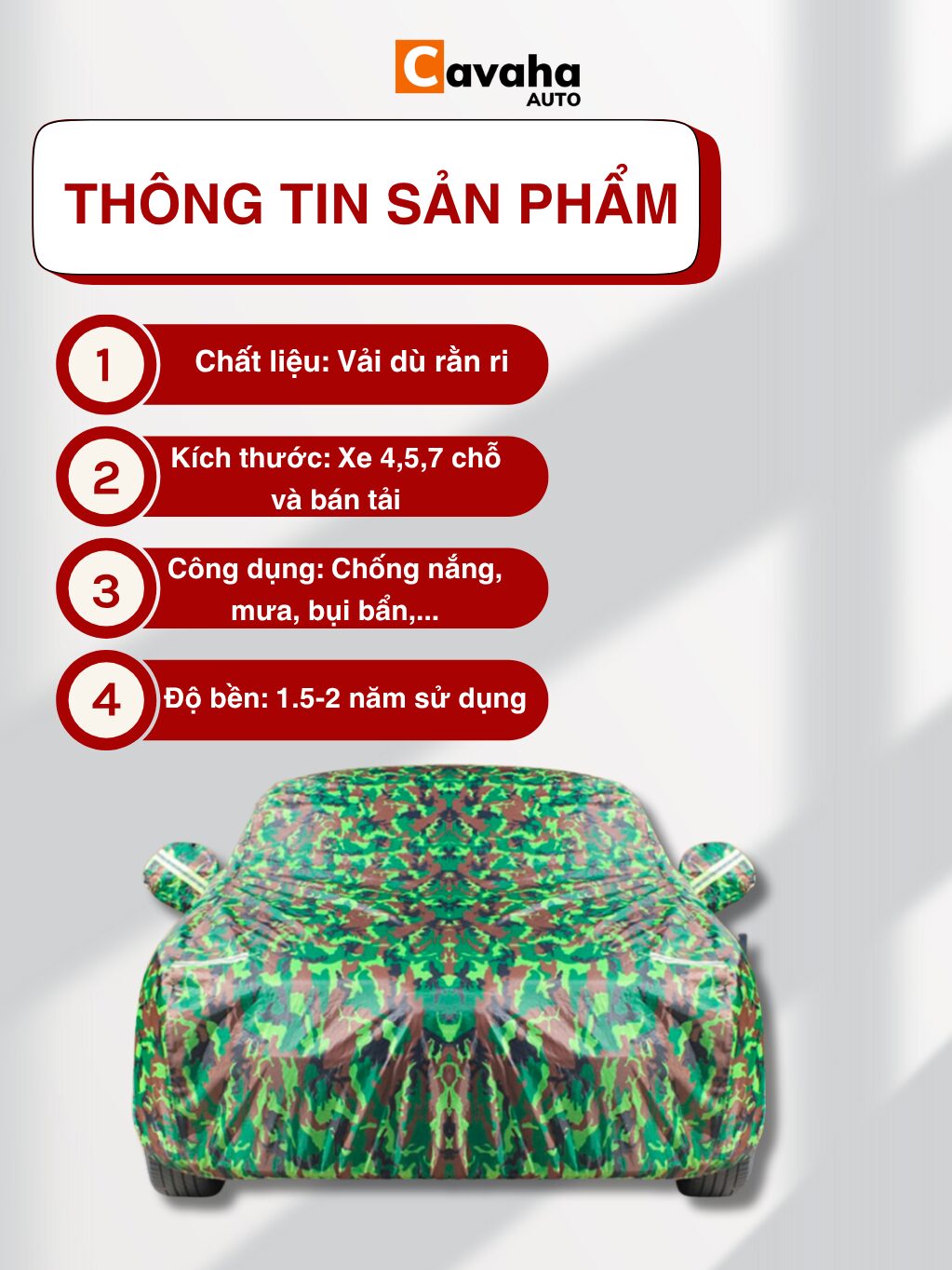 Bạt vải dù che ô tô cao cấp – Chống nắng mưa, chống xước