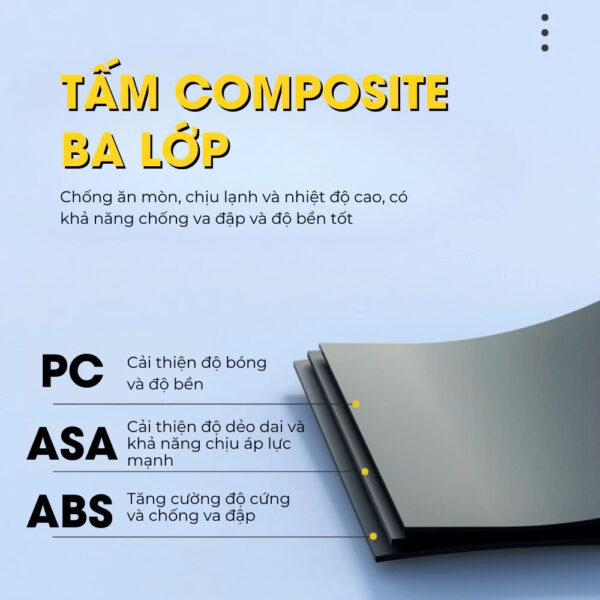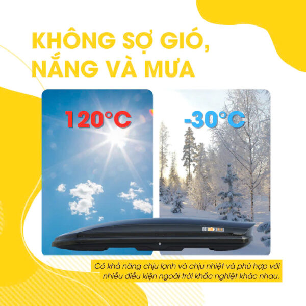 Cốp nóc được chế tạo từ nhựa ABS cao cấp kết hợp với thanh baga ngang bằng hợp kim nhôm. Chất liệu này giúp cốp nóc có khả năng chịu lực tốt, chống chịu thời tiết khắc nghiệt mà không bị nứt vỡ hay biến dạng. Bên cạnh đó, lớp sơn tĩnh điện chất lượng cao cũng góp phần tăng độ bền và tính thẩm mỹ cho sản phẩm.