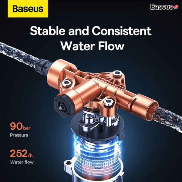 - Máy rửa xe áp lực cao Baseus F0 Car với công suất 1000W, áp suất 90bar đáp ứng nhu cầu vệ sinh xe, nhà cửa, sân vườn. Lưu lượng nước 252L/h giúp tiết kiệm nước hiệu quả.