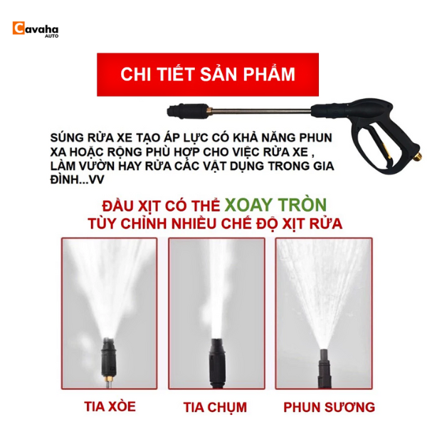 - Súng phun xoay 360° điều chỉnh 3 chế độ