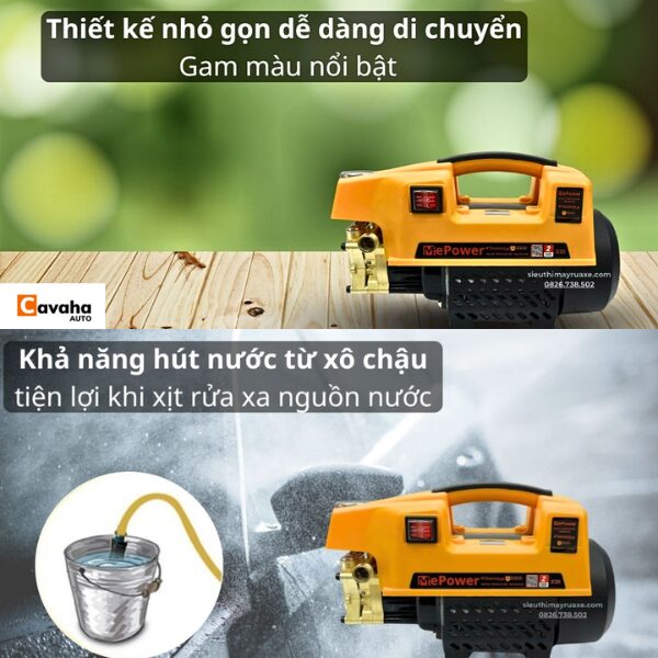 - Khả năng hút nước: Có – tự hút linh hoạt từ xô/chậu