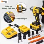 Máy siết bulong Dewalt là dòng máy bắn bulong cao cấp sử dụng động cơ không chổi than hiện đại, cho hiệu suất mạnh mẽ và ổn định. Thiết bị này có khả năng siết mở bulong, khoan, bắt vít, bắn tôn… đáp ứng hầu hết nhu cầu sửa chữa, lắp ráp trong công nghiệp và dân dụng. Nhờ cấu tạo đầu 2 trong 1, người dùng có thể vừa gắn đầu mở bulong, vừa gắn đầu bắt vít, cực kỳ tiện lợi. Sở hữu motor ruột đồng 100%, kết hợp pin dung lượng 5Ah – 20.000mAh, máy siết bulong hoạt động liên tục đến 8 giờ, giúp công việc trơn tru, tiết kiệm thời gian.