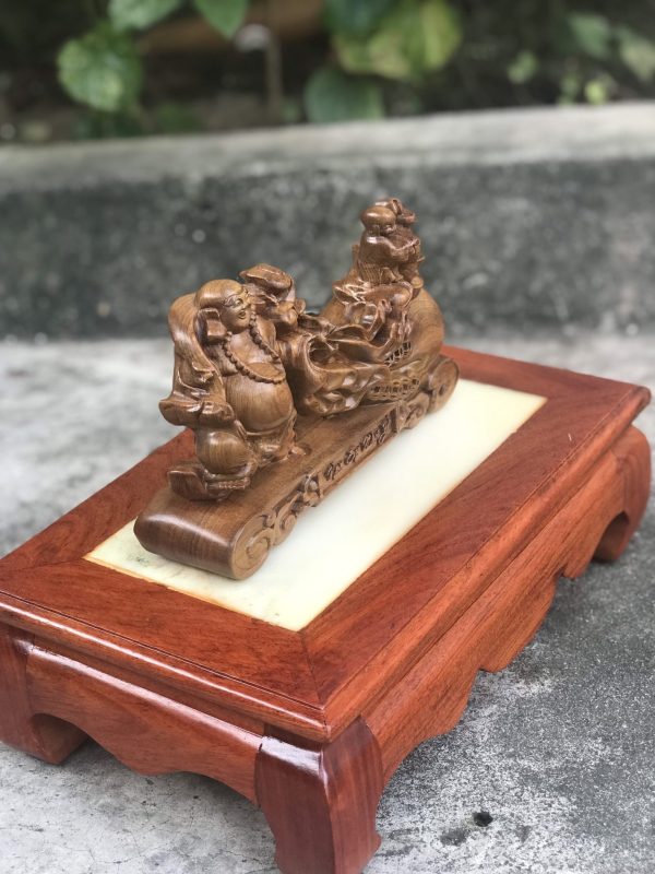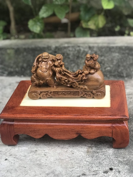 Đặt mua Tượng Di Lặc Kéo Bao Tiền Vạn Sự Như Ý Gỗ Bách Xanh